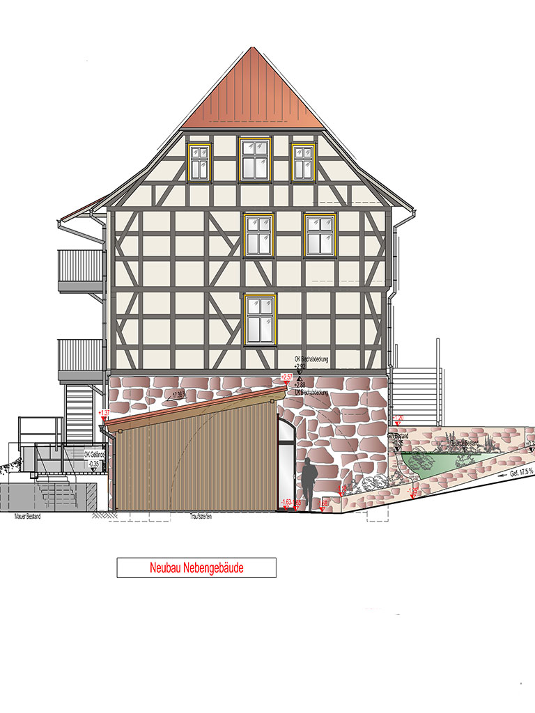 In Ergänzung der Naturparkwerkstatt, ist es geplant, unmittelbar angrenzend ein eingeschossiges und nicht beheiztes Mehrzweckgebäude zu errichten.